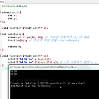 구조체 간단한 예제 .x .y 이렇게 쓰면 됩니다.