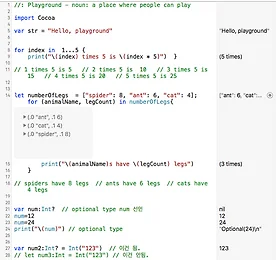전체 글 썸네일형 리스트형 (ios) Xcode - WebView 예제 1 결과 화면 파일 두개를 이렇게 해준다. //// ViewController.h// webview_160411//// Created by Mac on 2016. 4. 11..// Copyright © 2016년 tester. All rights reserved.// #import @interface ViewController : UIViewController{ IBOutlet UIWebView *webView; } @end ///============= //// ViewController.m// webview_160411//// Created by Mac on 2016. 4. 11..// Copyright © 2016년 tester. All rights reserved.// #import "ViewCont.. 더보기 (ios) Xcode - Swift에서 버튼 누르면 레이블에 글자 나오게 하기 New project - Single View Application 해서 Swift 클릭해서 프로젝트 파일 하나 만듬. 스토리보드 상황 - 레이블 1개랑 버튼 1개 만듬. 각각 오른쪽 마우스 클릭해서 새 창 띄운 viewcontroller.swift 와 드래그 해서 연결 해주는데 버튼 1개 이름을 btn2라고 짓고, 레이블 이름은 MLable이라고 지었습니다. ViewController.swift 내용 //// ViewController.swift// Swift_160415//// Created by Mac on 2016. 4. 15..// Copyright © 2016년 tester. All rights reserved.// import UIKit class ViewController: UIViewCo.. 더보기 (ios) Xcode - Playground에서 클래스 만드는 방법 만드는건 겨우 만들었는데 플레이그라운드에서 사용법을 모르겠네요.. ㅋㅋ 그냥 이렇다고 생각하고 New project - Single View Application 등 에서 사용 하면 될 듯 합니다.. class Boss1{ var width=100 // 멤버변수 var height=200 var color=100 var name:String? func getName() -> String?{ // 메서드 return self.name } func setName(name:String) { self.name=name } } 더보기 (ios) Xcode - Playground에서 함수 사용방법 세번째 함수속에 함수를 넣어서 사용 가능하다. 지역변수 - 함수안에 선언된 변수 프로그램 종료 시 같이 종료 된다. //: Playground - noun: a place where people can play import Cocoa var str = "Hello, playground" //===== func son22(age:Int) -> String{ func num1(baseAge:Int) -> Int{ return baseAge+1 } let msg=" 나이는 \(num1(20)) " return msg; } son22(1); //===== func son23(name:String) -> String{ func num1(baseAge:Int) -> Int{ return baseAge+1 } let msg.. 더보기 (ios) Xcode - Playground에서 함수 사용방법 두번째 // 변수명: 타입func fn1(num1:Int, num2:Int, num3:Int ) -> Int{ let sum = num1 + num2 + num3; return sum;} var sumfn1 = fn1(100, num2: 200, num3: 300); print(sumfn1); //======== func fn2(str:String, num:Int){ print("\(str)님 나이는 \(num)살 입니다.")} // 두번째 매개변수부터는 변수명을 써줘야 한다.fn2("Test", num: 20) //========== func foo(name : String, _param:Int) -> String{ // _param++ let msg="\(name)님의 나이는 \(_param)입니다." re.. 더보기 (ios) Xcode - Playground에서 변수, 상수, if, switch문 사용 방법 playground : main 함수 같은 것 없다. // C언어의 문법이 완전히 호환. //: Playground - noun: a place where people can play import Cocoa var str = "Hello, playground" var i = 10; // ; 생략 가능. // 변수 : 1개의 데이터값을 저장 // 자료형 // 자료형이 정수형 var str2 = "tester"; // 자료형이 문자열 var i1 = 10;var i2 = 20;var i3 = i1+i2; // 상수let helloq = "absd";// 상수선언 값을 변화 할 수 없다. // 자료형의 명시. 변수를 선언 var itsInter:Int=10var itsString:String="manso1"l.. 더보기 (ios) Swift 개발 문서를 볼 수 있는 사이트 소개 현재 ios는 처음 배우고 초짜라 잘 모르는데 아래의 사이트를 이용하면 조금이나마 실력이 늘수 있을 것 같다.. 운영체제부터 생소하고 아직도 적응이 안되네 .. ㅋㅋ http://swift.leantra.kr/#about-swift 화면은 아래와 같이 나옵니다. likelink.co.kr/31159 더보기 (ios) Xcode - Playground에서 함수 사용방법 Xcode 설치 후 플레이그라운드를 실행한다. Xcode는 맥os에서 작동되는 프로그램이고 PC나 노트북에서 설치가 가능하다. playground에서 코드를 입력하면 아래와 같이 옆에 결과가 뜬다. 쓰면 옆에 미리 어떻게 나오는지 결과가 나온다. 플레이그라운드로 뭘 할 수 있는지는 잘 모르지만 일단 테스트 용도라고 생각하고 써보았다. 아래는 테스트 해본 코드이다. [ Playground ] //: Playground - noun: a place where people can play import Cocoa var str = "Hello, playground" for index in 1...5 { print("\(index) times 5 is \(index * 5)") } // 1 times 5 is 5.. 더보기 이전 1 ··· 50 51 52 53 54 다음